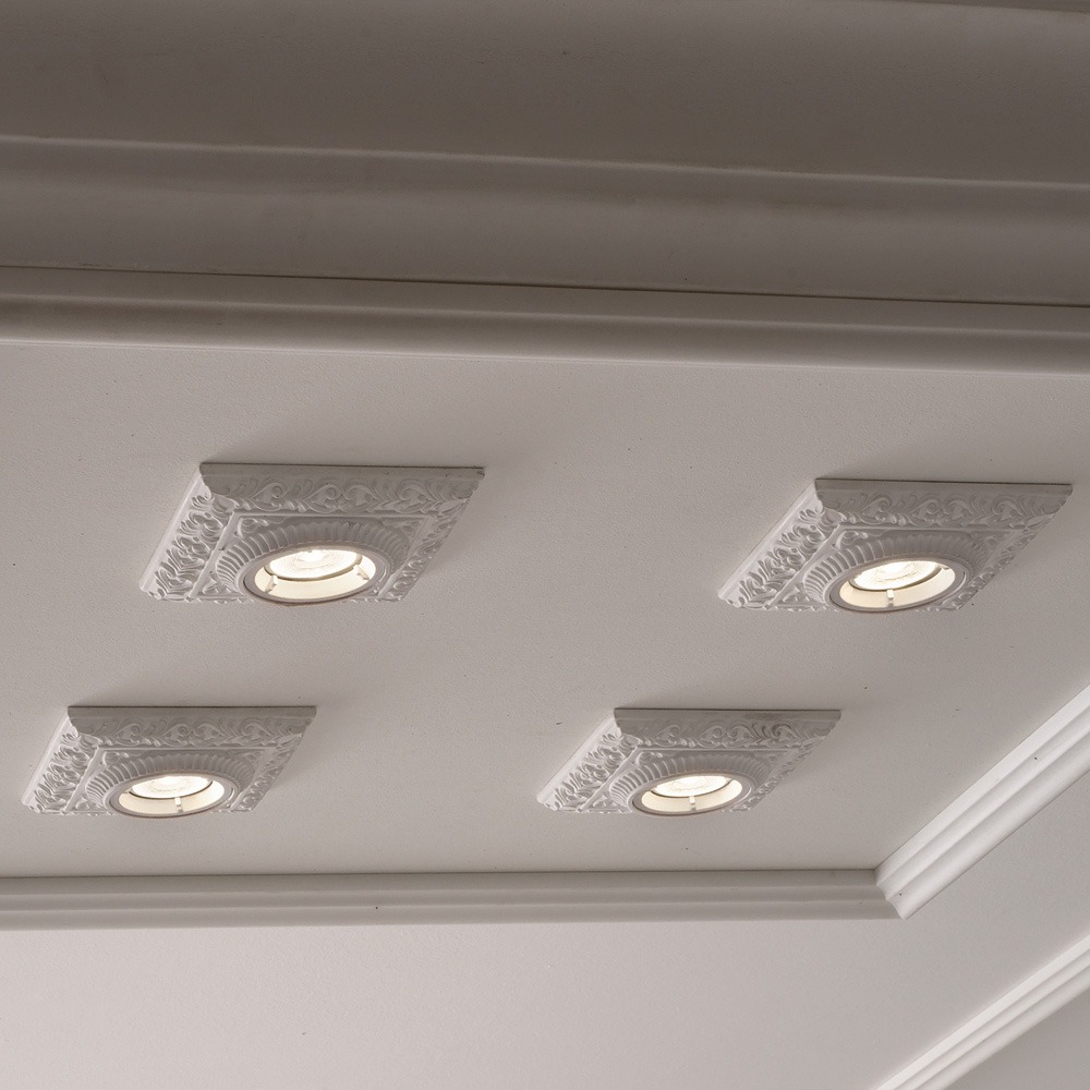 luminaire encastré avec corps en plâtre blanc naturel et source led GU10 incluse. disponible en rond ou carré.