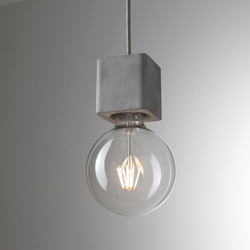 Tisch-, Boden-, höhenverstellbare Pendelleuchte mit speziellem Elektrokabel. auch mit Deckenbefestigung auf Seilrolle. Gussbetonelemente. Version E27.