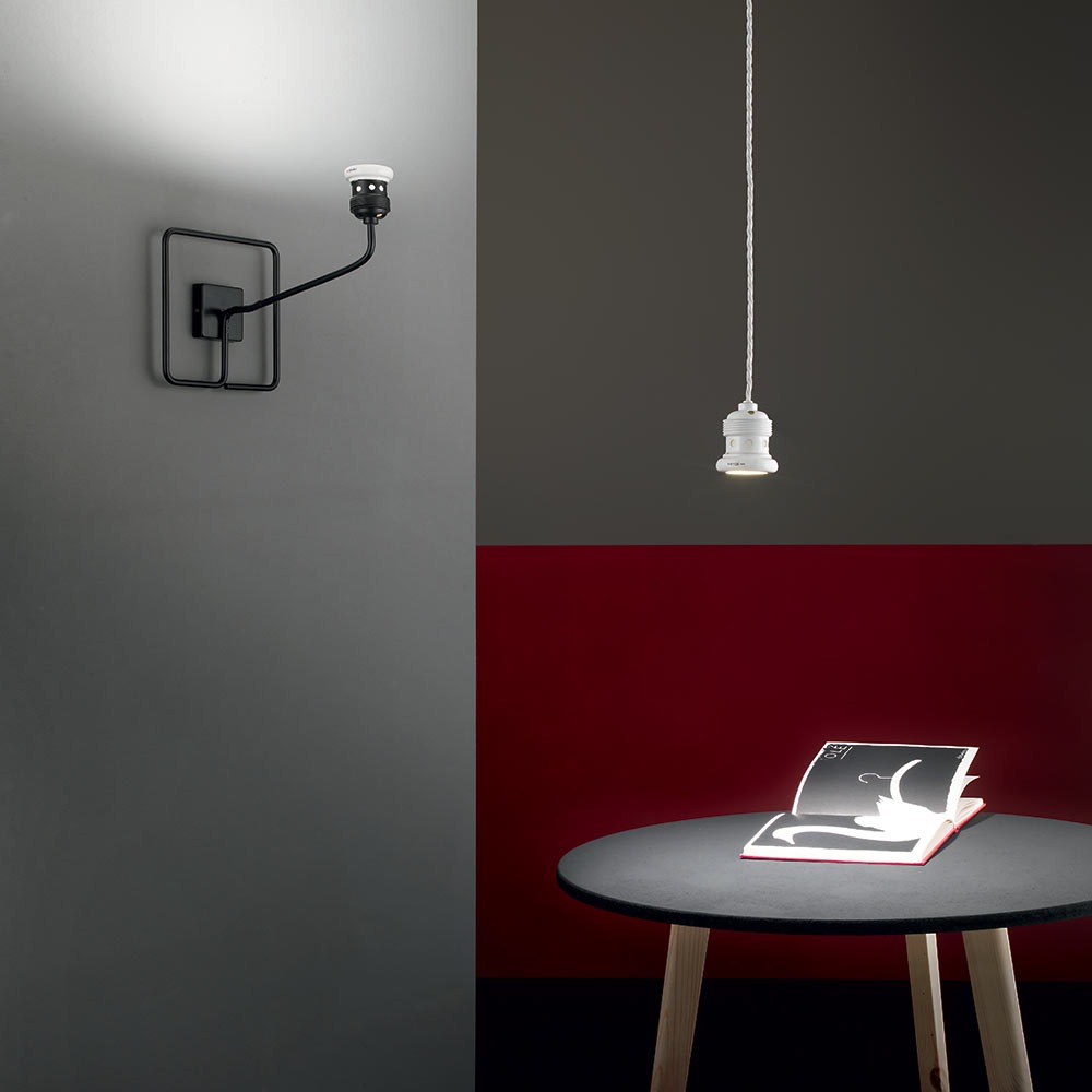 old E40 metal socket allow the led source and became structure for led source for table, floor and wall lamp. metal body finished painted totalwhite o totalblack.