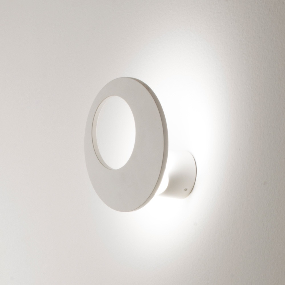 Dispositivo de pared de fundición a presión en aluminio y luz indirecta. Gira 100° con difusor ajustable de 45°. Acabados en blanco o negro.