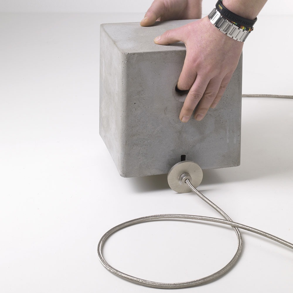 Dispositivo de mesa, suelo, colgante ajustable en altura en con cable eléctrico. También con fijación a una polea en el techo. Elementos en cemento. Versión E27.