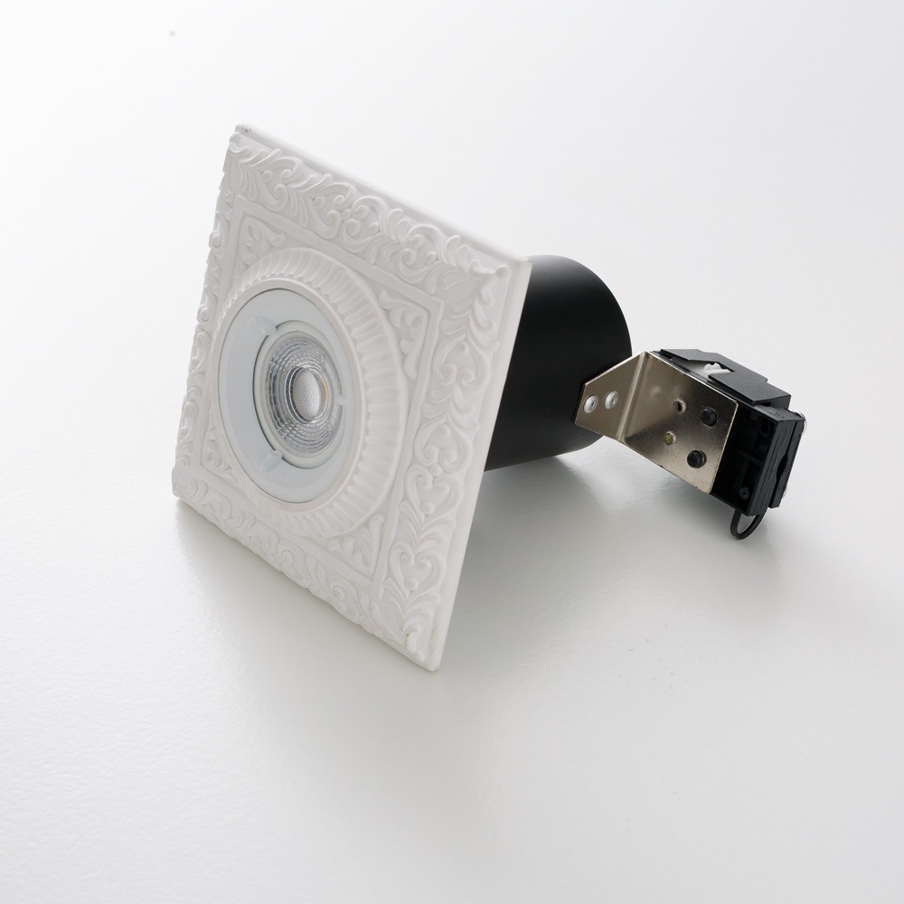 luminaire encastré avec corps en plâtre blanc naturel et source led GU10 incluse. disponible en rond ou carré.