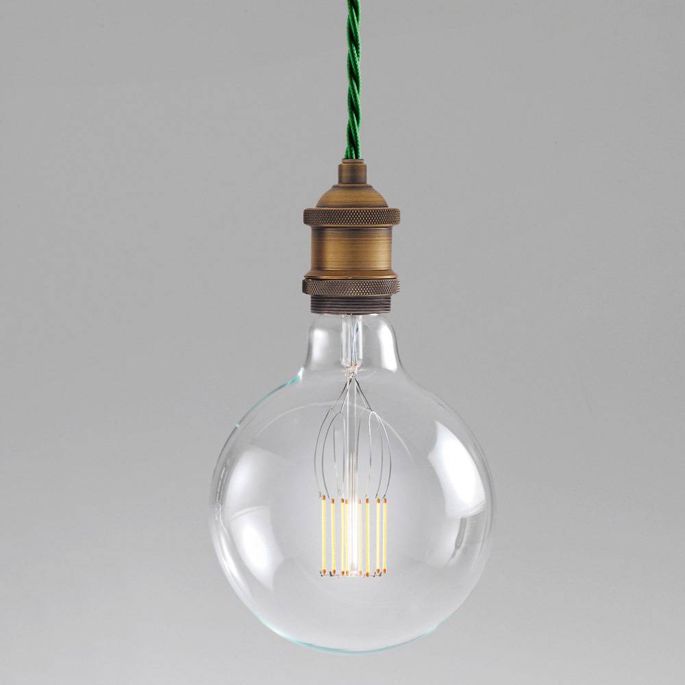 lampe à suspension réglable en hauteur avec câble électrique tressé spécial recouvert de tissu dans les couleurs disponibles. douille en métal tourné, finition laiton bruni brossé-mat. lampe à incandescence led incluse.