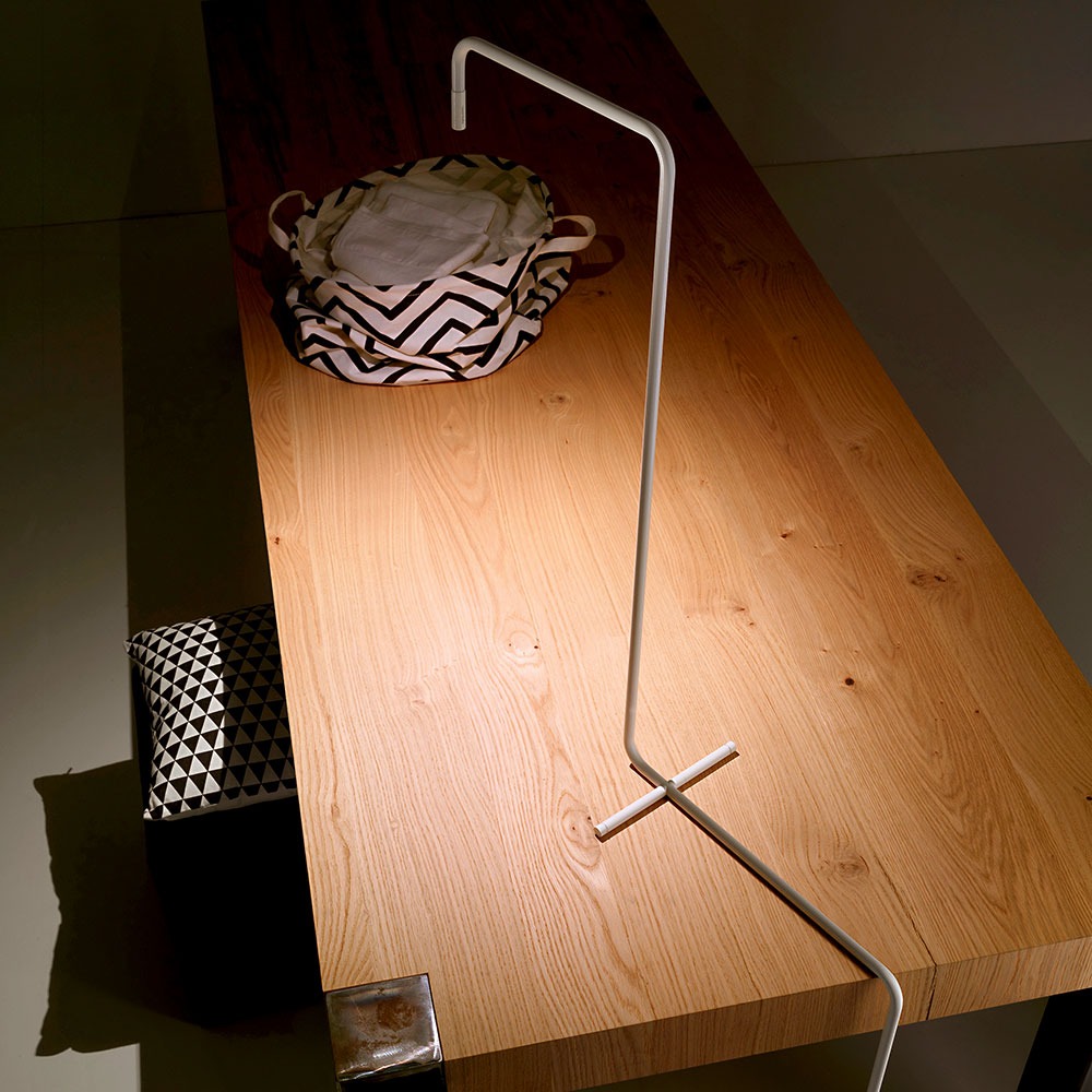 lampe de table. structure en acier ou laiton. finition peinte, galvanisée ou laiton brut. module led intégré avec on/off et conducteur sur la prise. disponible également en version E27 on/off. graduable sur demande.