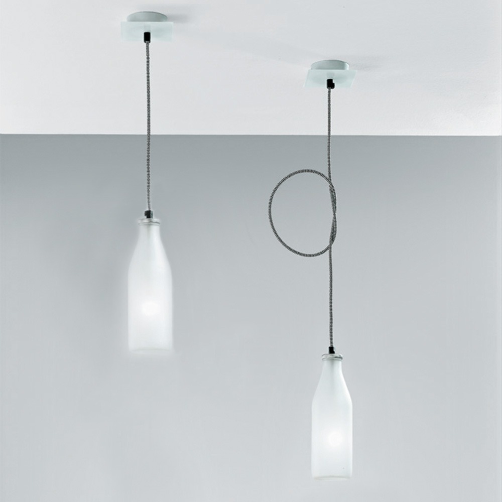 luminaire suspendu avec diffuseur en verre sablé et détails en acier en finition nickel-mat. suspension réglable en hauteur sur câble électrique spécial en tissu noir ou blanc/noir. lampe à led incluse.