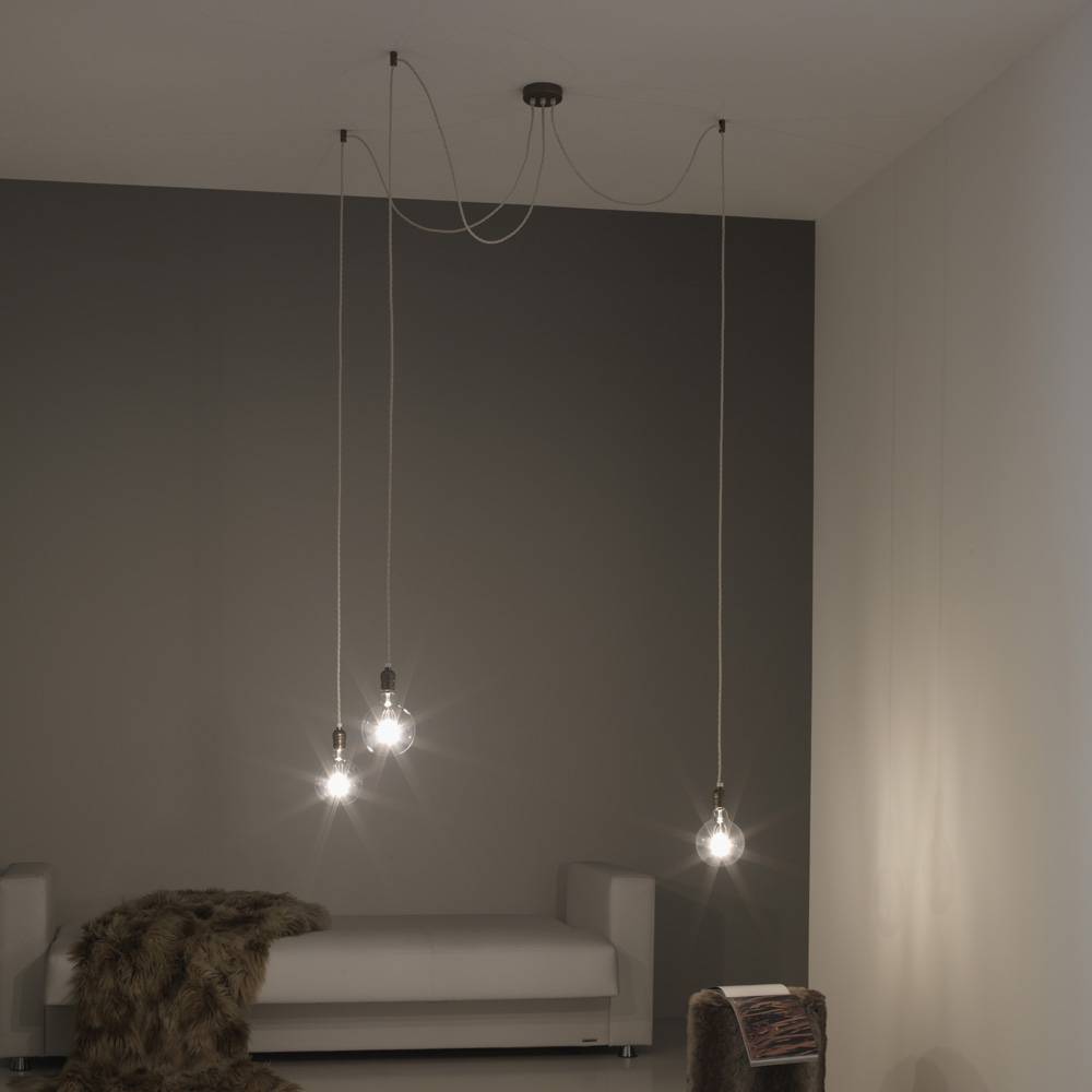apparecchio a sospensione regolabile in altezza con cavo elettrico speciale a treccia rivestito in tessuto nei colori disponibili. portalampade in metallo tornito finitura ottonato brunito spazzolato-matt. lampada filamento led inclusa.
